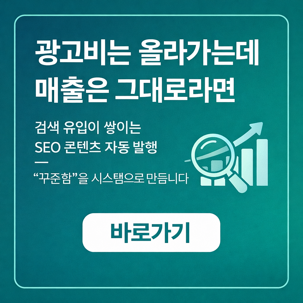 블로그 글의 수가 아니라 품질과 최적화가 중요한 시대입니다. 방문자를 이해하고, 그들에게 맞춘 전략적 콘텐츠와 홈페이지 최적화가 곧 문의 증가의 지름길입니다.